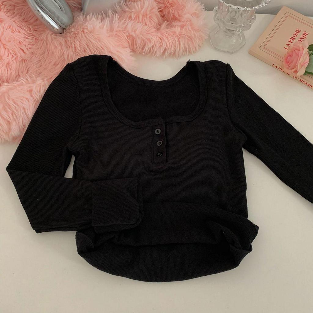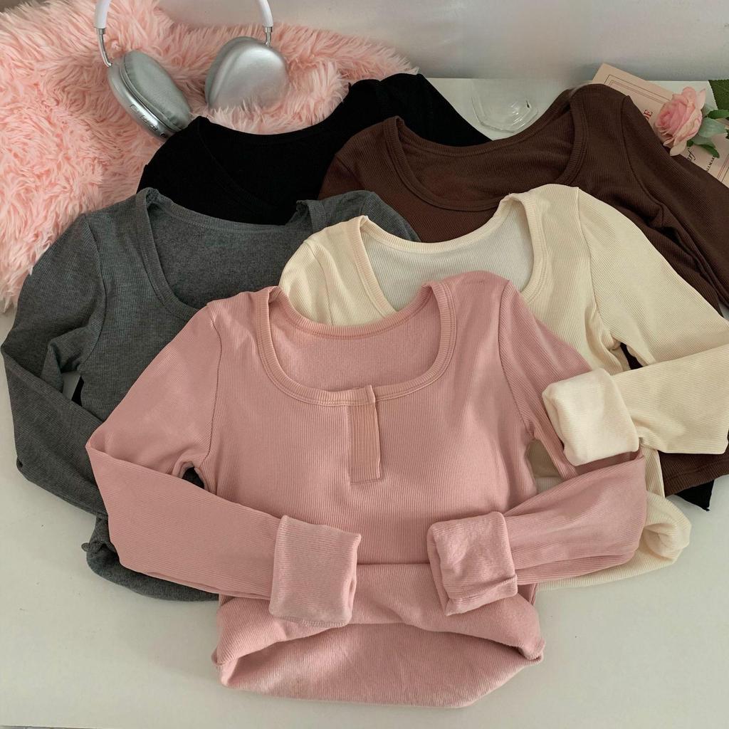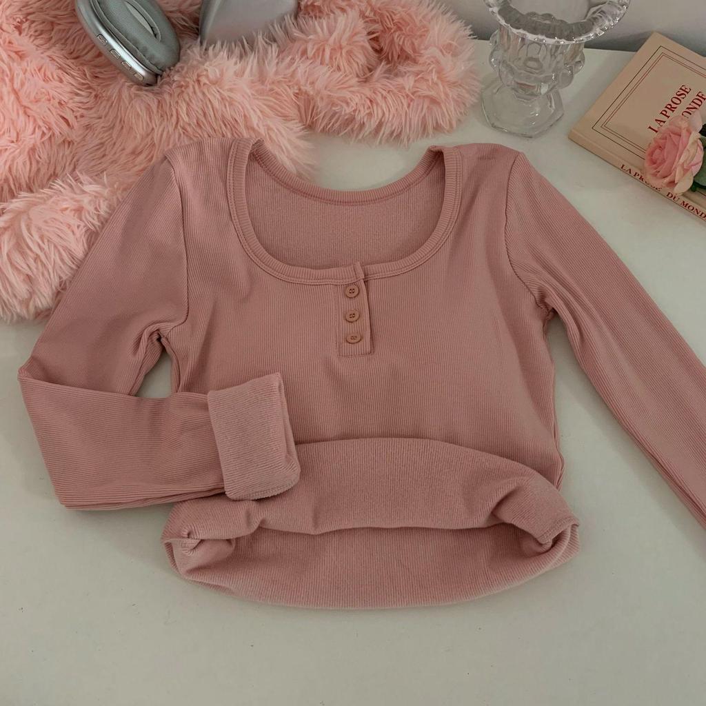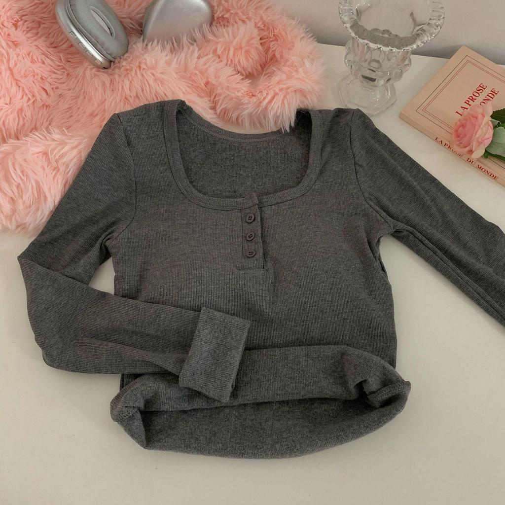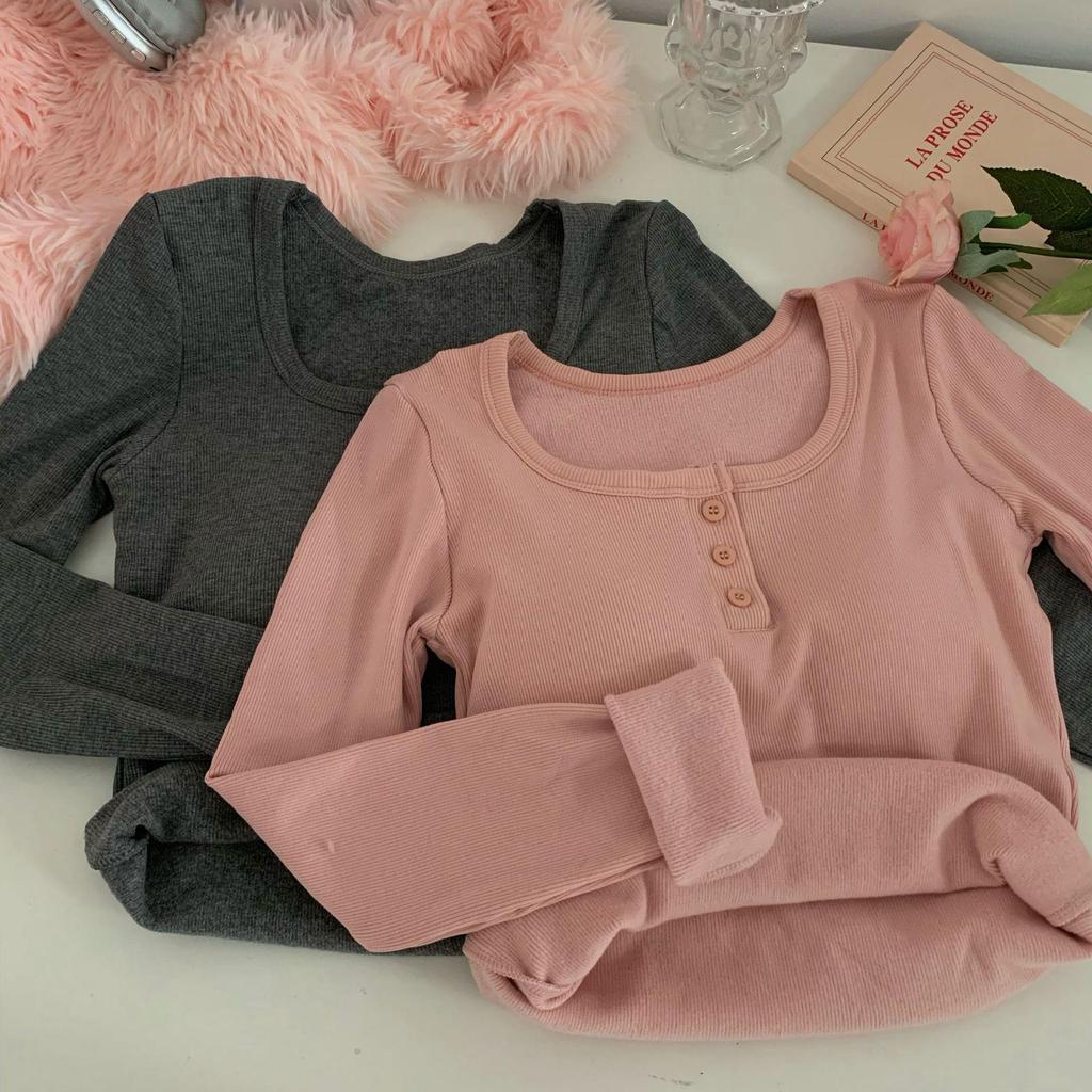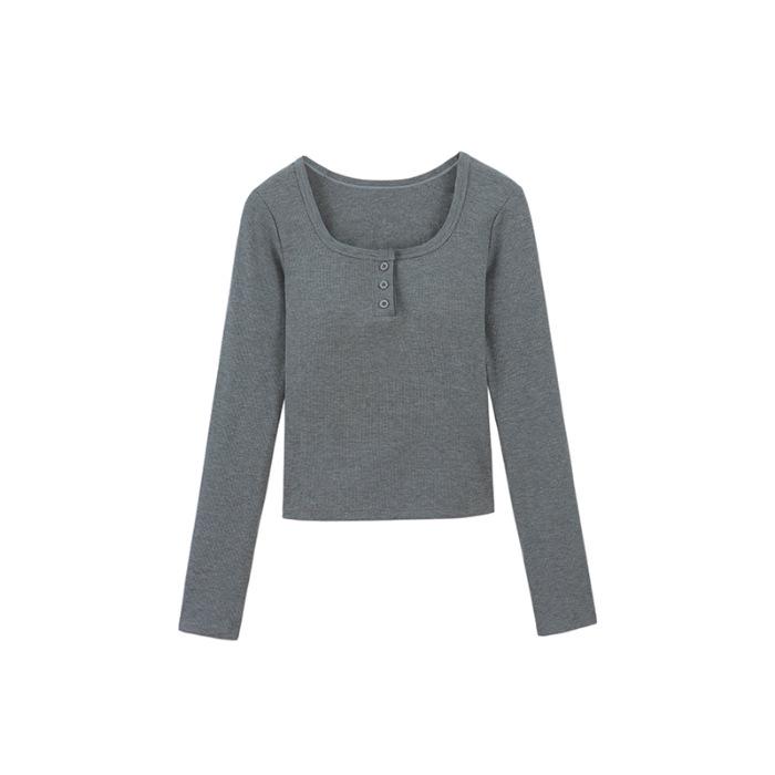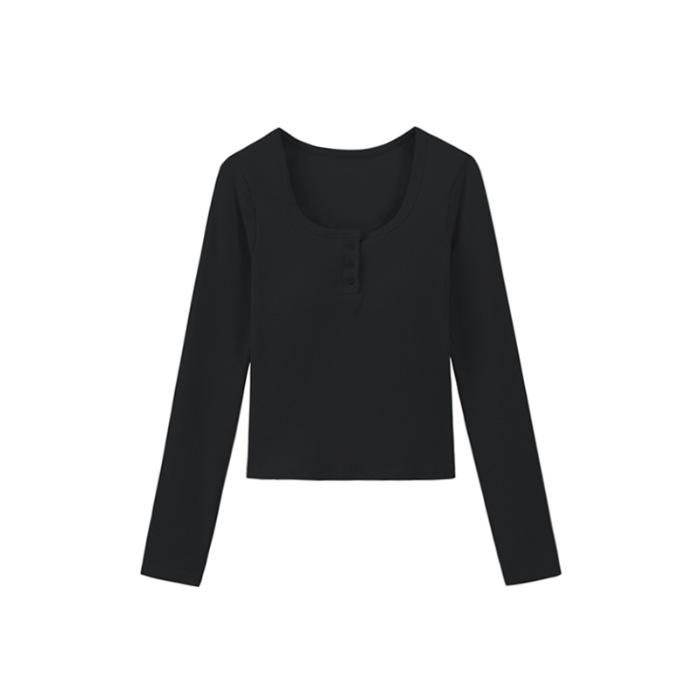 Женская футболка облегающего кроя с квадратным воротником, длинными рукавами и нагрудными накладками для осени и зимы