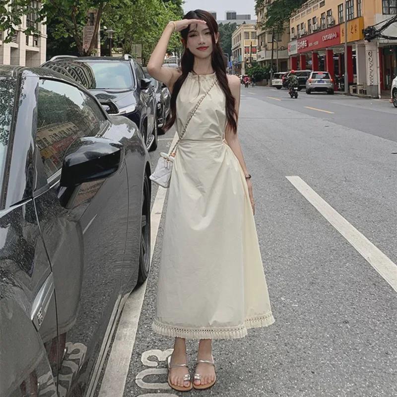 Женское платье с халтер-воротом и кисточками: Заниженная талия, завязывающийся пояс, длинная облегающая юбка, праздничный стиль. — купить товар онлайн с бесплатной доставкой по всему миру!