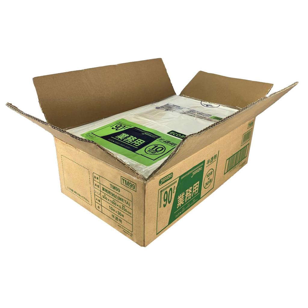 Мусорный мешок Japax толщиной 90 л, 10 листов x 30 книг, TM99, пластиковый пакет с металлоценовым составом, устойчивым к растяжению (Полупрозрачный) 0,030 мм