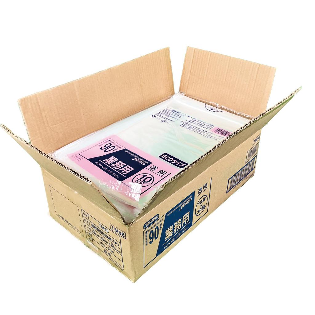 Мусорный мешок Japax толщиной 90 л, 10 штук x 30 книг TM98 Пластиковый пакет с металлоценовым составом, устойчивым к растяжению (прозрачный) 0,030 мм (300