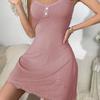 Летняя женская ночная рубашка, повседневная пижама, ночное платье, однотонное, с U-образным вырезом, на пуговицах, без рукавов, со спиной-борцовкой, мини-платье для сна, домашняя одежда