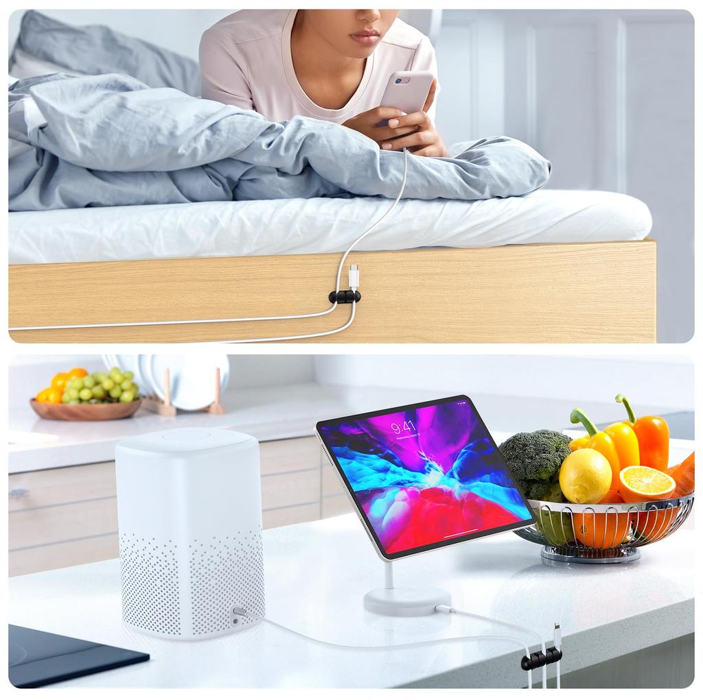 [Прочная двухсторонняя лента] Легко устанавливается и удаляется с помощью прочного клея 3M. Его можно удалить, не повреждая поверхность, на которую вы его нанесли, и не оставляя следов.. Его можно использовать на самых разных материалах, таких как дерево, стекло, пластик и мрамор, не беспокоясь об отслаивании.. Кабели можно аккуратно закрепить не только на вертикальных поверхностях, таких как боковины мебели и салоны автомобилей, но также на столешницах и задних панелях столов.