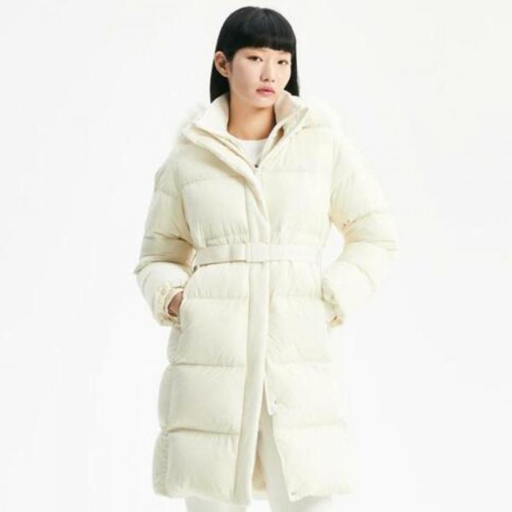 New Balance Премиум-поясанный гусиный пух с длинной подкладкой цвета слоновой кости Nbnpd4w152