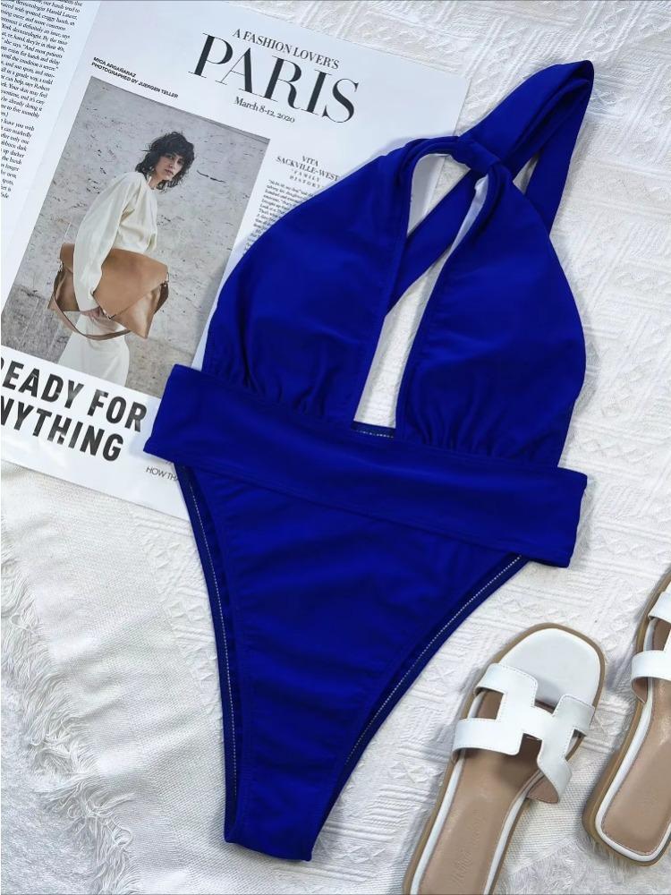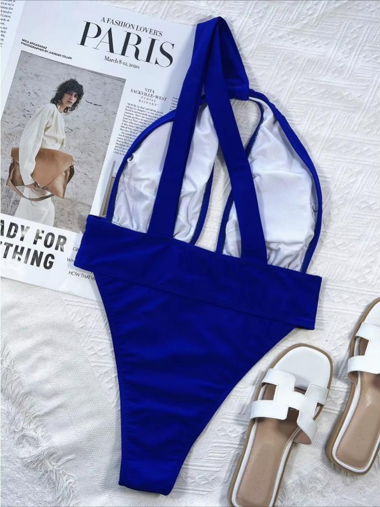 Цельный купальник женский королевский синий полые одно плечо высокая талия купальный костюм пляжная одежда Banadores Mujer 2024