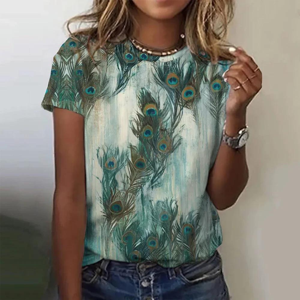 Летняя модная женская футболка с павлиньим пером и 3D принтом, топ в стиле Харадзюку, красочные индивидуальные футболки с короткими рукавами, одежда оверсайз