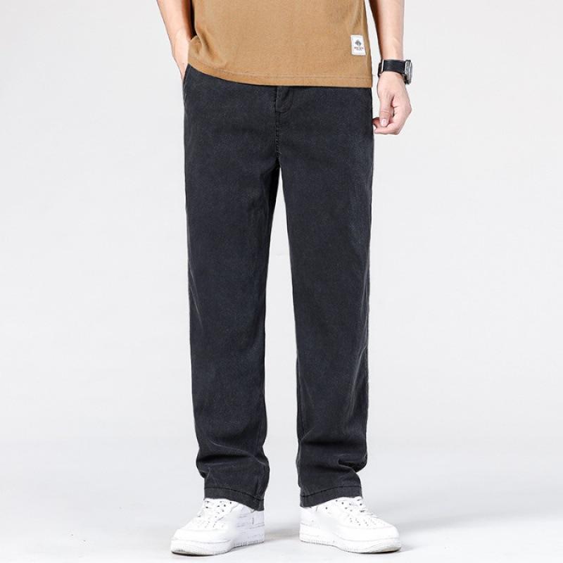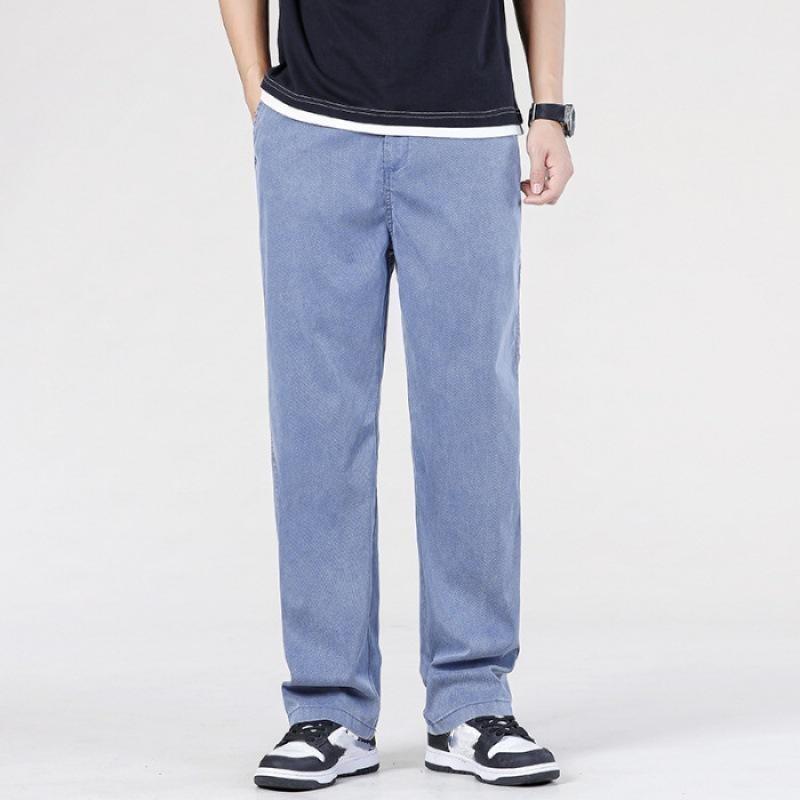 Мужские летние свободные повседневные широкие брюки, однотонные джинсы со средней посадкой и выбеленными краями