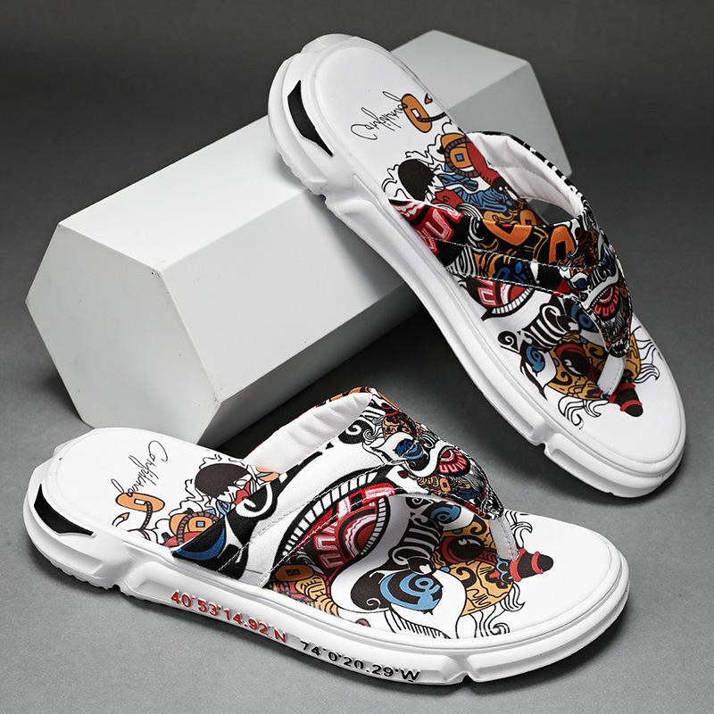 Тапочки Guochao, мужская летняя одежда, спортивная обувь на толстой подошве, пляжные нескользящие шлепанцы, уличные трендовые повседневные сандалии