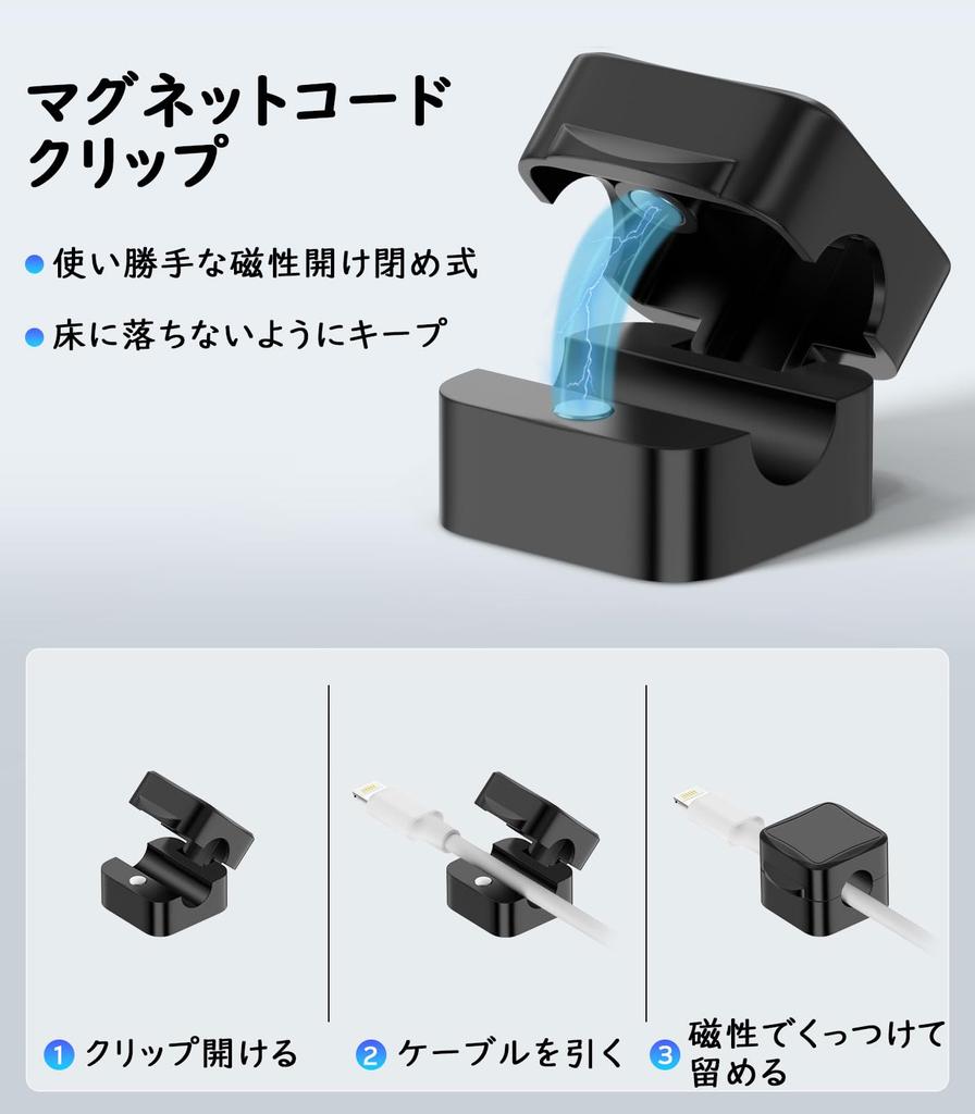 ``Простая магнитная связка'' Поскольку зажим имеет встроенный сильный магнит, при хранении связанных кабелей просто защелкните их вместе, чтобы аккуратно закрепить их вместе и предотвратить их легкое распутывание.. Даже при отсоединении пучка кабелей его можно присоединить и отсоединить мгновенно, что упрощает использование.