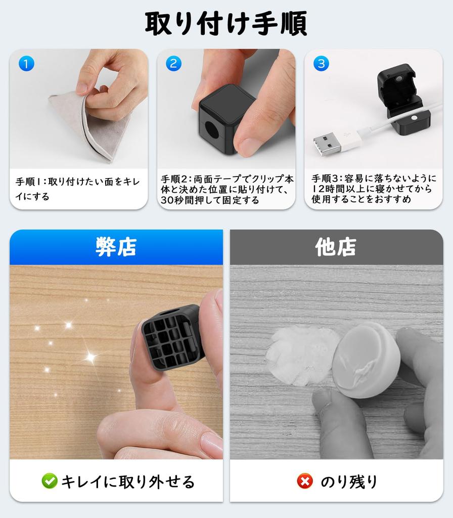 «Двусторонний скотч для крепления к плоской поверхности» Вы можете прикрепить 8 клипс в разных местах по мере необходимости, используя прилагаемый двусторонний скотч вместо одного. Если вы установите его на стене или столе, или в легкодоступном месте, он будет менее заметен, увеличит ваше рабочее пространство и его будет удобно доставать, когда он вам понадобится, что делает его идеальным для связывания кабелей на узком столе.