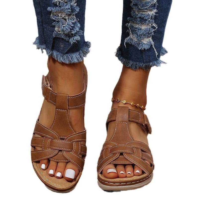 Сандалии женские летние новые большие наклонные каблуки удобные повседневные женские сандалии на липучках