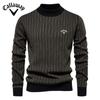 Callaway 2025 Осень и зима вышитый новый полувысокий ворот тонкий полосатый топ, модный качественный мужской свитер-пуловер