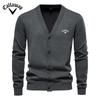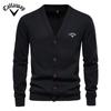 Callaway 2025 Осень/Зима Новый Вышитый Свитер Мужской Кардиган Свитер Высокого Качества Деловой Однотонный Трикотажный Свитер