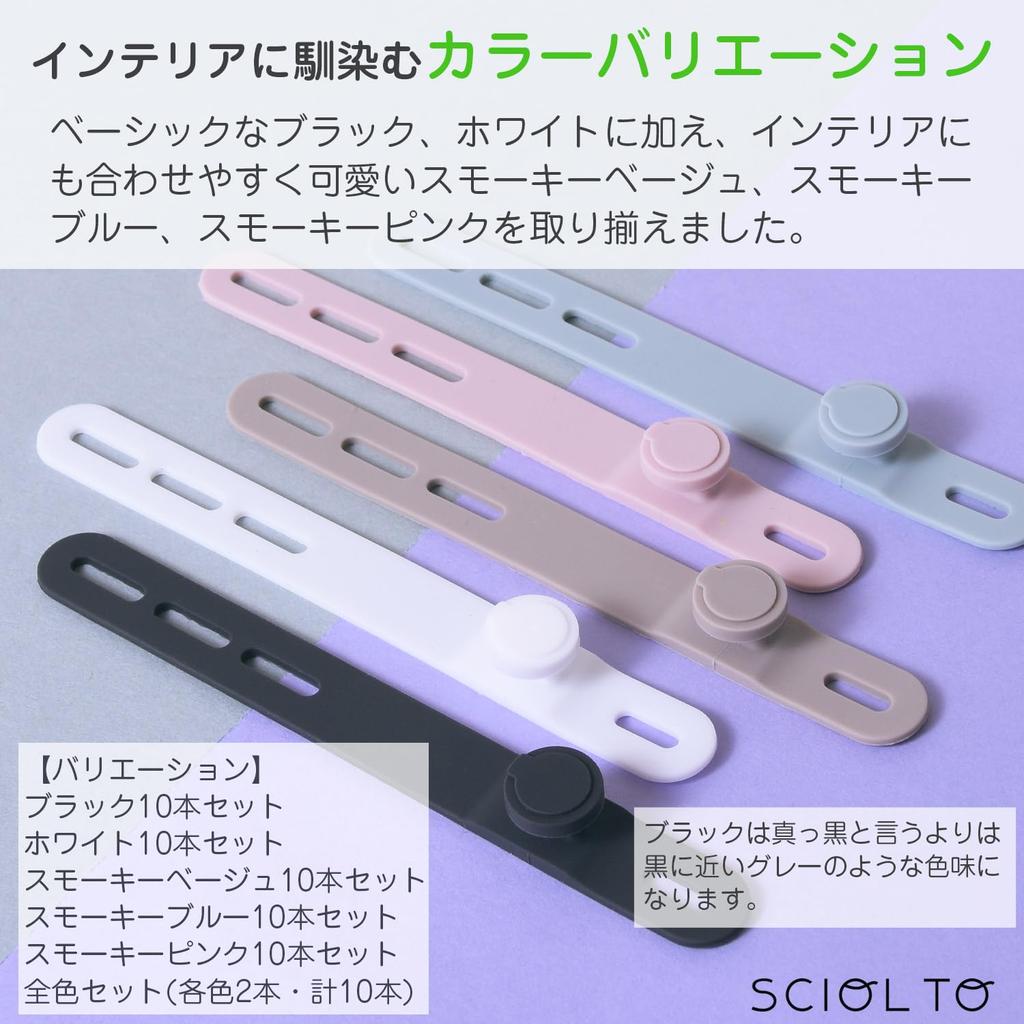 [Чистота и порядок с кабельными стяжками! ] Стильно организуйте кабели, которые имеют тенденцию запутываться. Он не запутывается при переноске или хранении и его можно быстро снять для следующего использования.. [Мягкий силиконовый материал, который можно использовать многократно] Силиконовый материал, который не повредит кабель. Он мягкий и гибкий, поэтому с ним легко обращаться.. Он отталкивает воду, поэтому даже если испачкается, его можно легко вытереть.. [Очень простая установка] ① Совместите кабель с одним отверстием. ➁ Оберните и закрепите кабель. ③ Свяжите кабели. ④ Оберните ленту и соберите кабели.. [Цветовые вариации, которые хорошо подойдут к вашему интерьеру] Помимо базовых черного и белого, у нас также есть симпатичные дымчато-бежевые, дымчато-голубые и дымчато-розовые цвета, которые легко сочетаются с вашим интерьером.. [Полезен в различных ситуациях] Его можно использовать не только для организации пространства вокруг телевизора, компьютера, кухни и т. д.. дома, но его также легко носить с собой, поэтому, если положить его в сумку, его удобно использовать в дороге.. Соединив несколько шнуров, вы также сможете закрепить объемные шнуры и шторы.