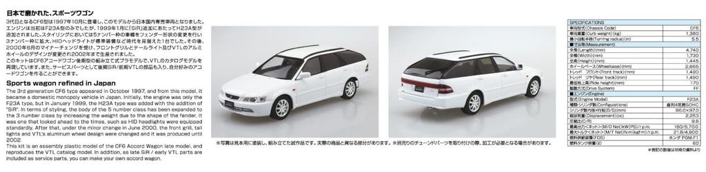 Aoshima Bunka Kyozai Модель автомобиля серии Honda CF6 Accord Wagon VTL Пластиковая модель 1/24 № 140 '00 (Машина)