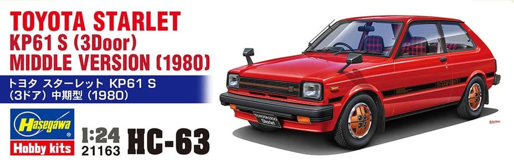 Hasegawa Серия Исторические автомобили Toyota Starlet KP61 S 1980 Пластиковая модель HC63 1/24 (3 двери) Среднесрочный (Машина)