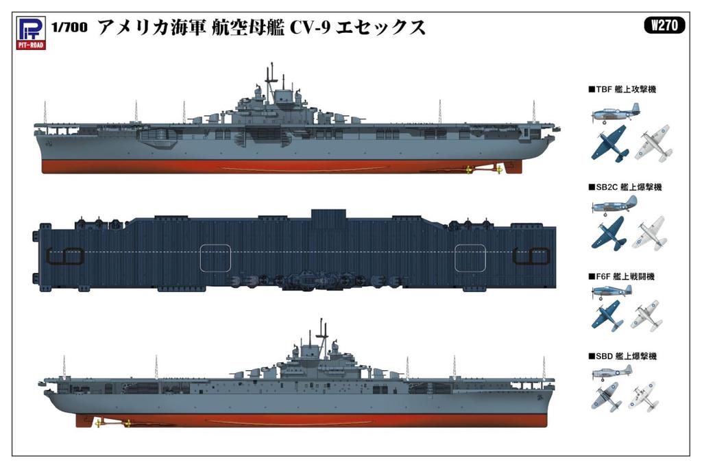 Пластиковая модель американского авианосца Essex Pit Road Skywave Series W270 1/700 CV-9 (Корабль)