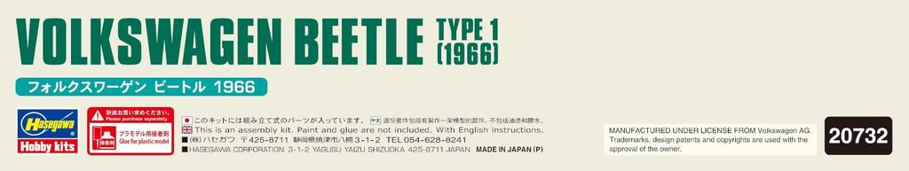 Hasegawa Volkswagen Beetle 1966 Пластиковая модель 20732 1/24 (Машина)