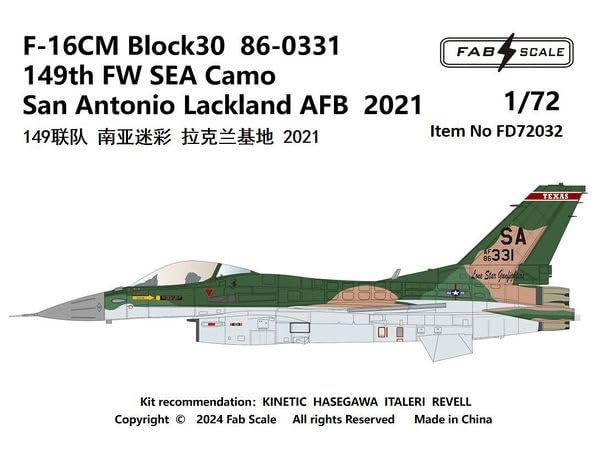 Fab Scale Studio Block 30 FW SEA Camouflage San Air Force Base 2021 Plastic Model Decal FABD72032 1/72 F-16CM 86-0331149th Antonio-Lackland (Airplane)