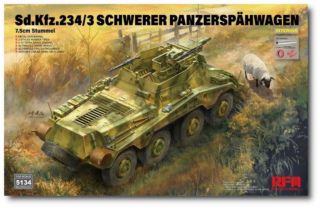 Тяжелая бронированная разведывательная машина Ryfield Model Stummell gun пластиковая модель RFM5134 1/35 Sd.Kfz.234/3 7,5 см 8-колесная (боевая машина)