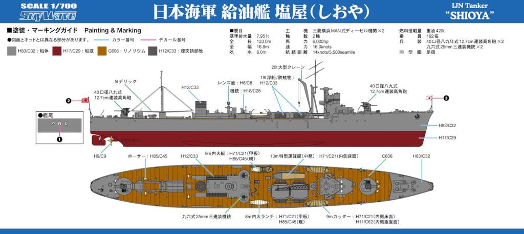 Pit Road Skywave Series Японский ВМС заправщик типа Ashizuri Shioya с табличкой с названием корабля, травленые детали, пластиковая модель W254NH 1/700 флаг,