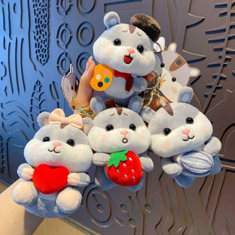Cartoon Plush Doll Keyring Soft Stuffed Animal Pendant Cute Plush Hamster Keychain Gift