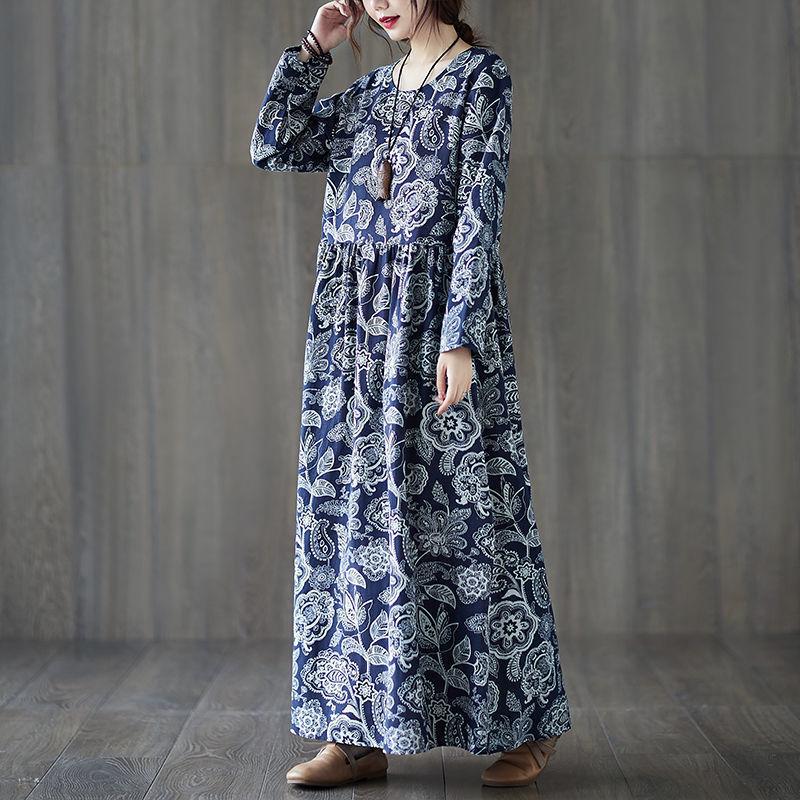 Весенне-осеннее женское ретро-этническое платье свободного покроя больших размеров