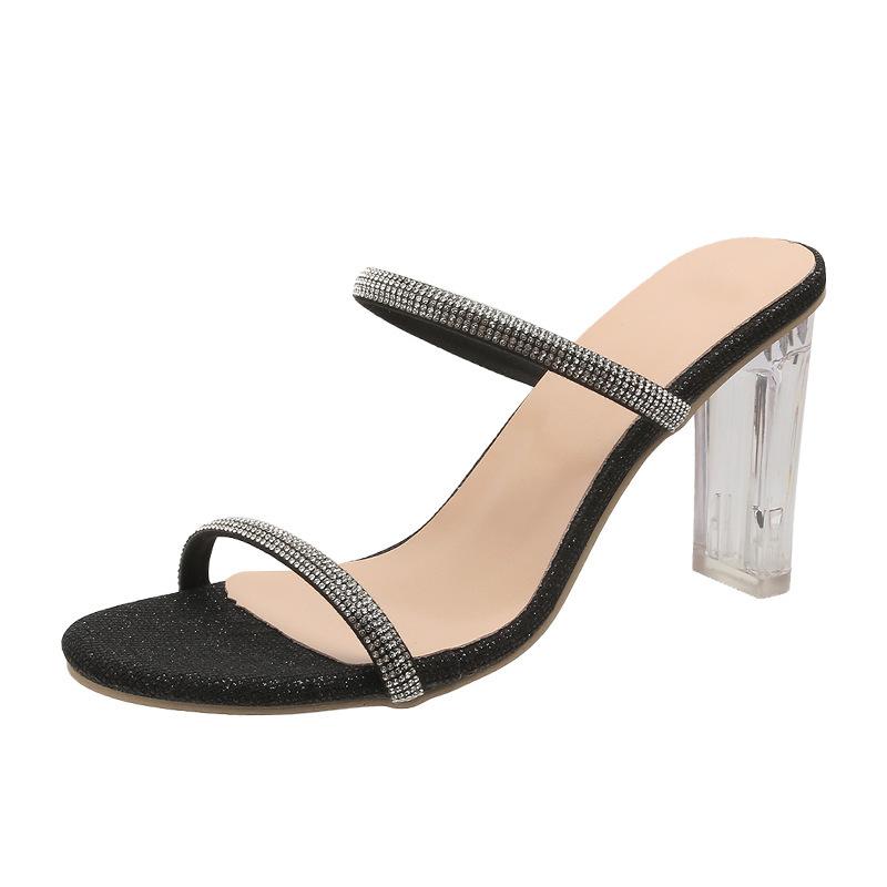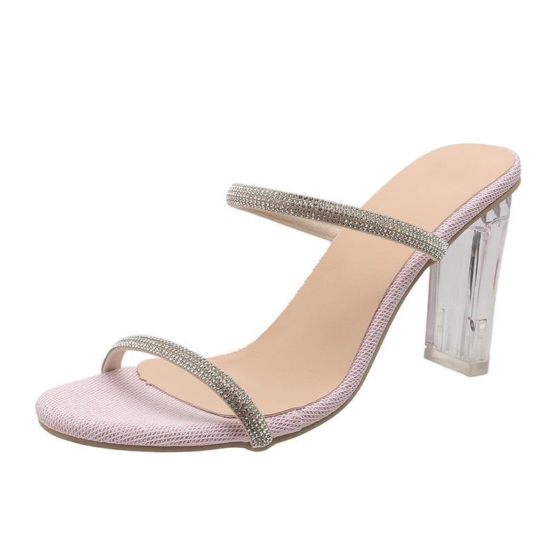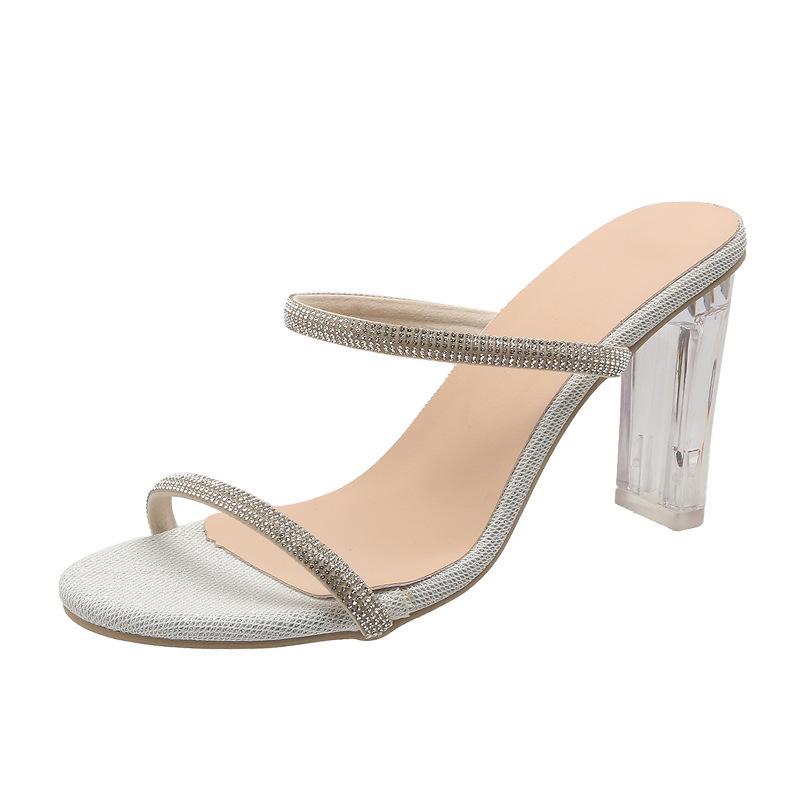 Крутые тапочки на высоком каблуке, женские, лето 2025, новые, со стразами, верхняя одежда, мода, односложный ремень, женская обувь