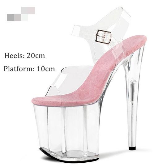 Women's shoes 2025 summer new one-word buckle strap stiletto high heel transparent sandals temperament fashion super high heels