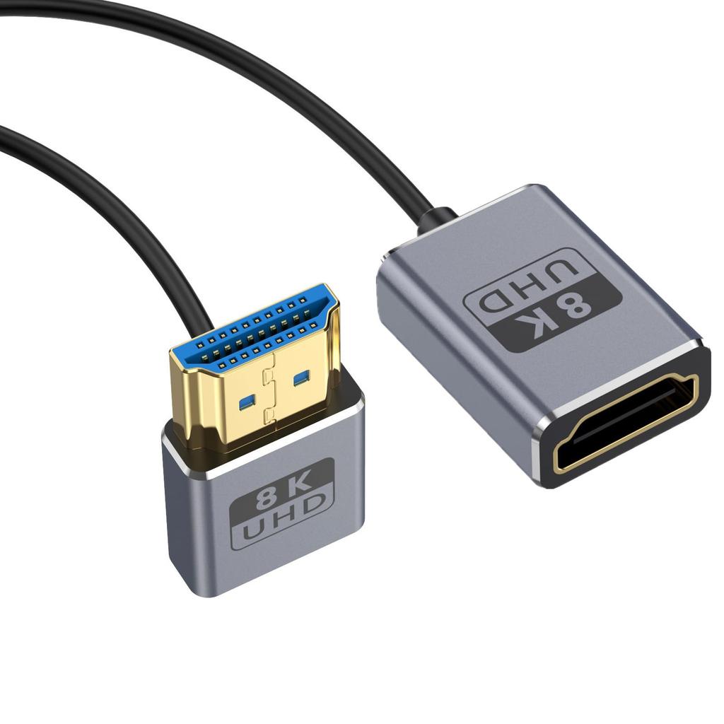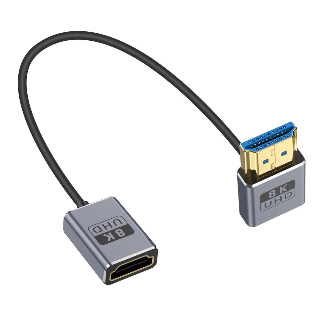 Короткий кабель Duttek L-образной формы HDMI 2.1, удлинительный кабель 8K HDMI «папа-мама», кабель-конвертер L-образной формы HDMI, сверхскоростная пропускная способность 48 Гбит/с, сверхтонкий кабель HDMI OD2.5mm, поддерживает 8K при 60 Гц, 4K при 240 Гц, Dynamic HDR, eARC, совместим с GH5S, PS5, монитором Xbox One, ПК. длина 30см