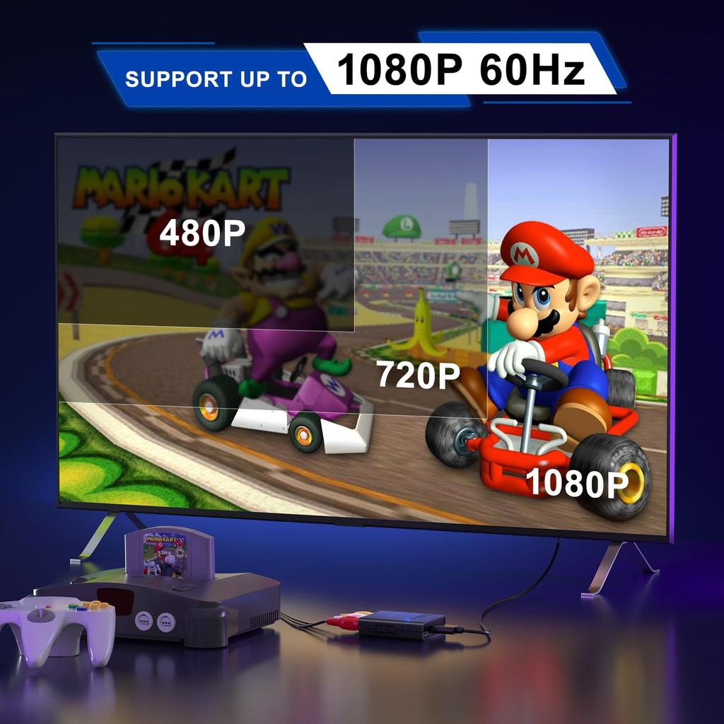 [Широкая совместимость] Вход: Совместим с PS2, PS3, VHS, видеомагнитофоном, Wii, N64, Xbox, DVD-плеерами и другими устройствами HDMI. Применимо к большинству устройств ввода с AV-портами. Выход: HDTV, монитор, дисплей и т. д.