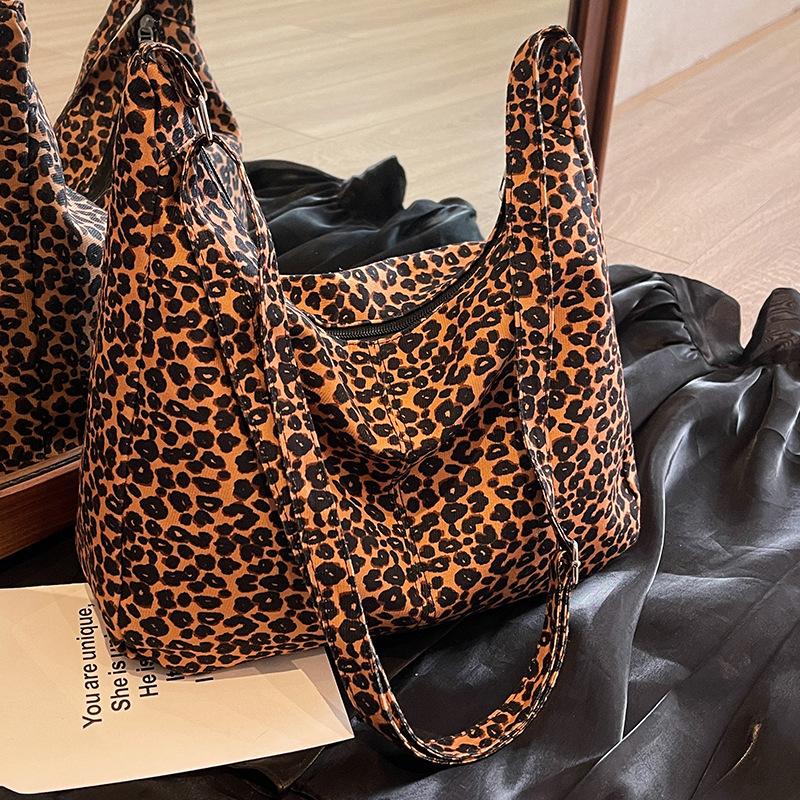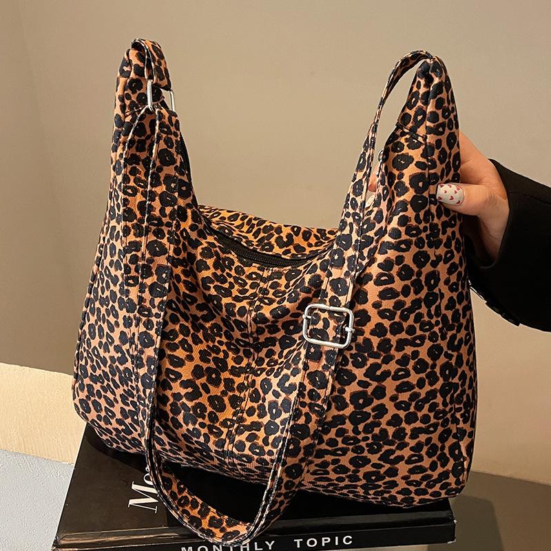 Корейский стиль Модный леопардовый принт Большая вместительная сумка-тоут Новая повседневная женская сумка через плечо Ретро сумка через плечо