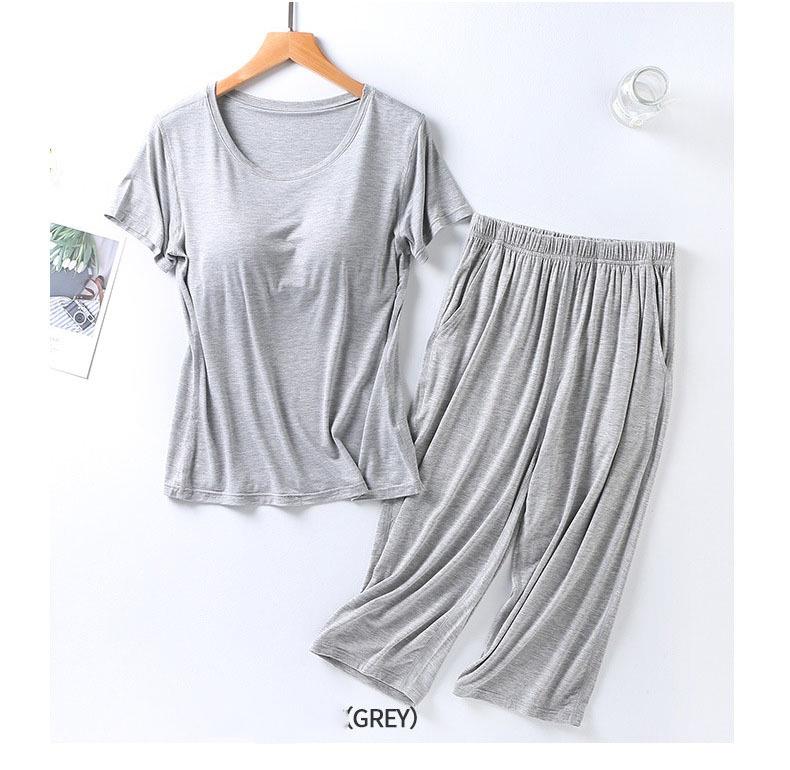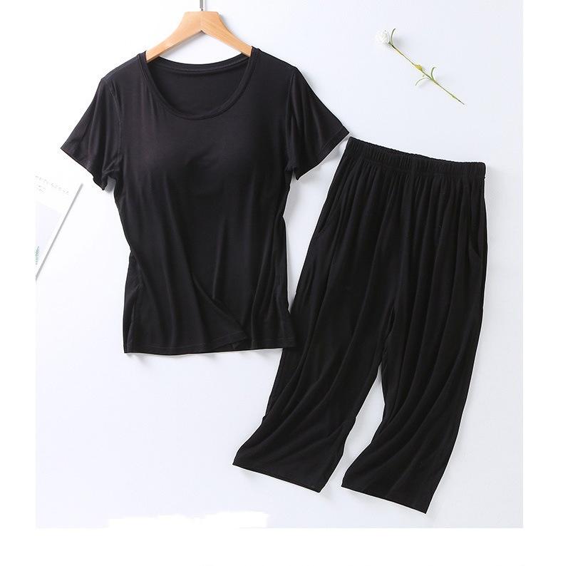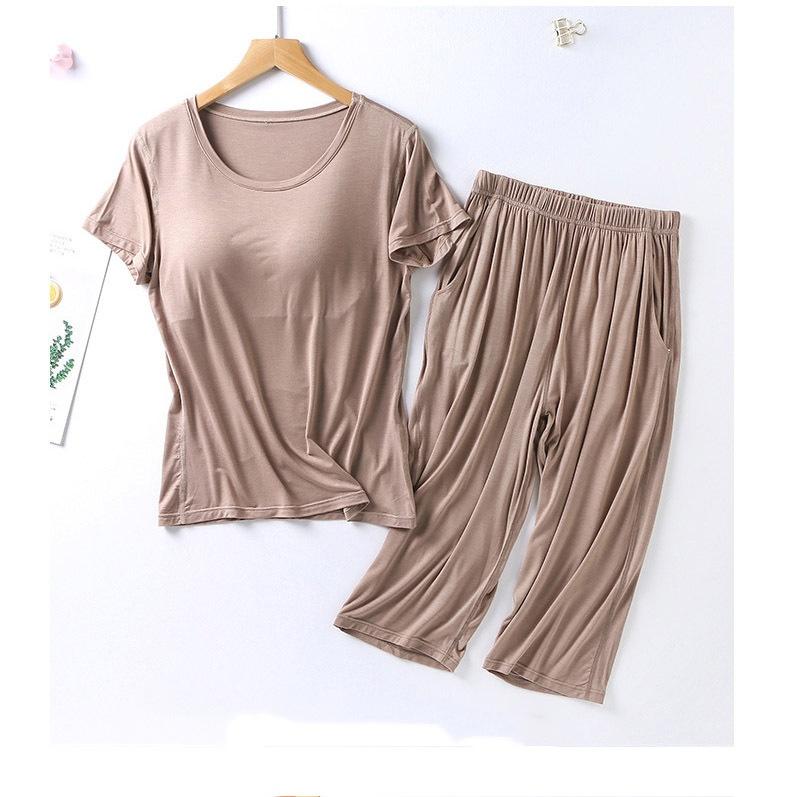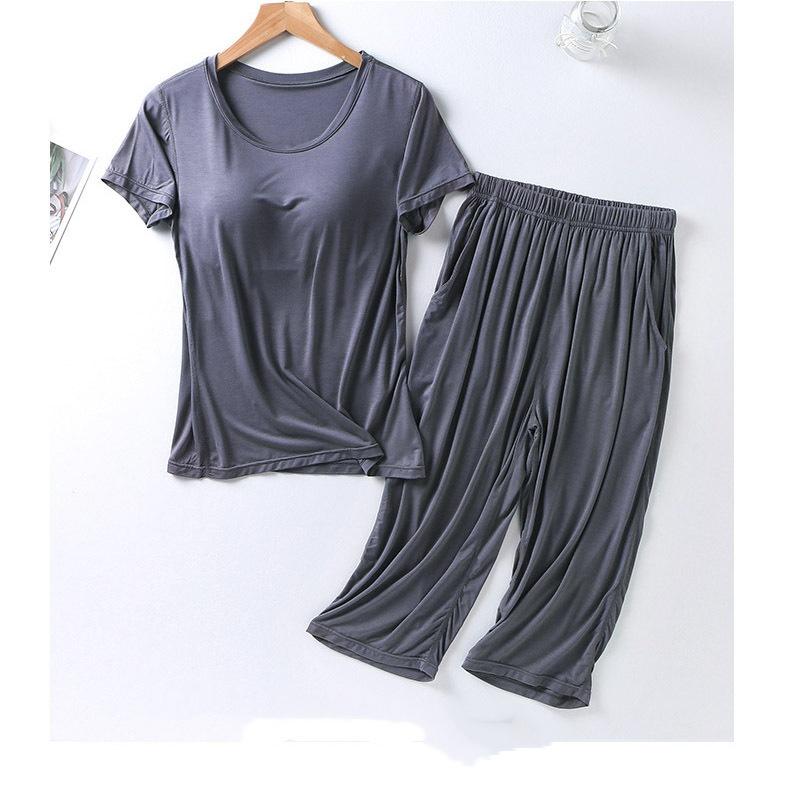 Летний однотонный пижамный костюм, весенне-летний, укороченные брюки из модала с короткими рукавами и бюстгальтером с подкладками для груди, цельный домашний костюм