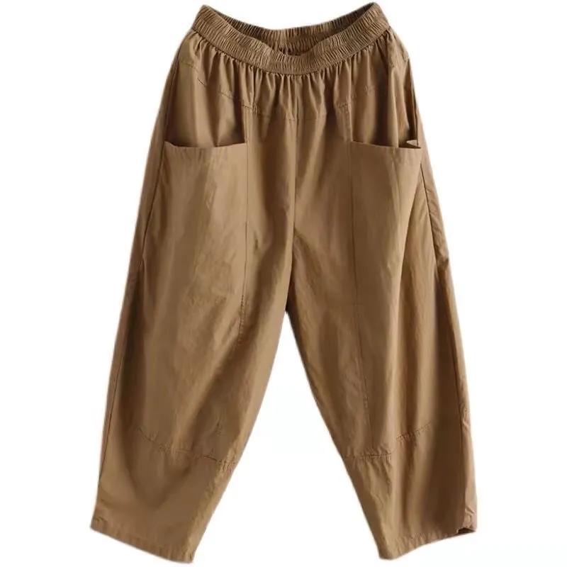 Повседневные брюки-каррот с эластичным поясом и девятью точками, летние женские брюки больших размеров
