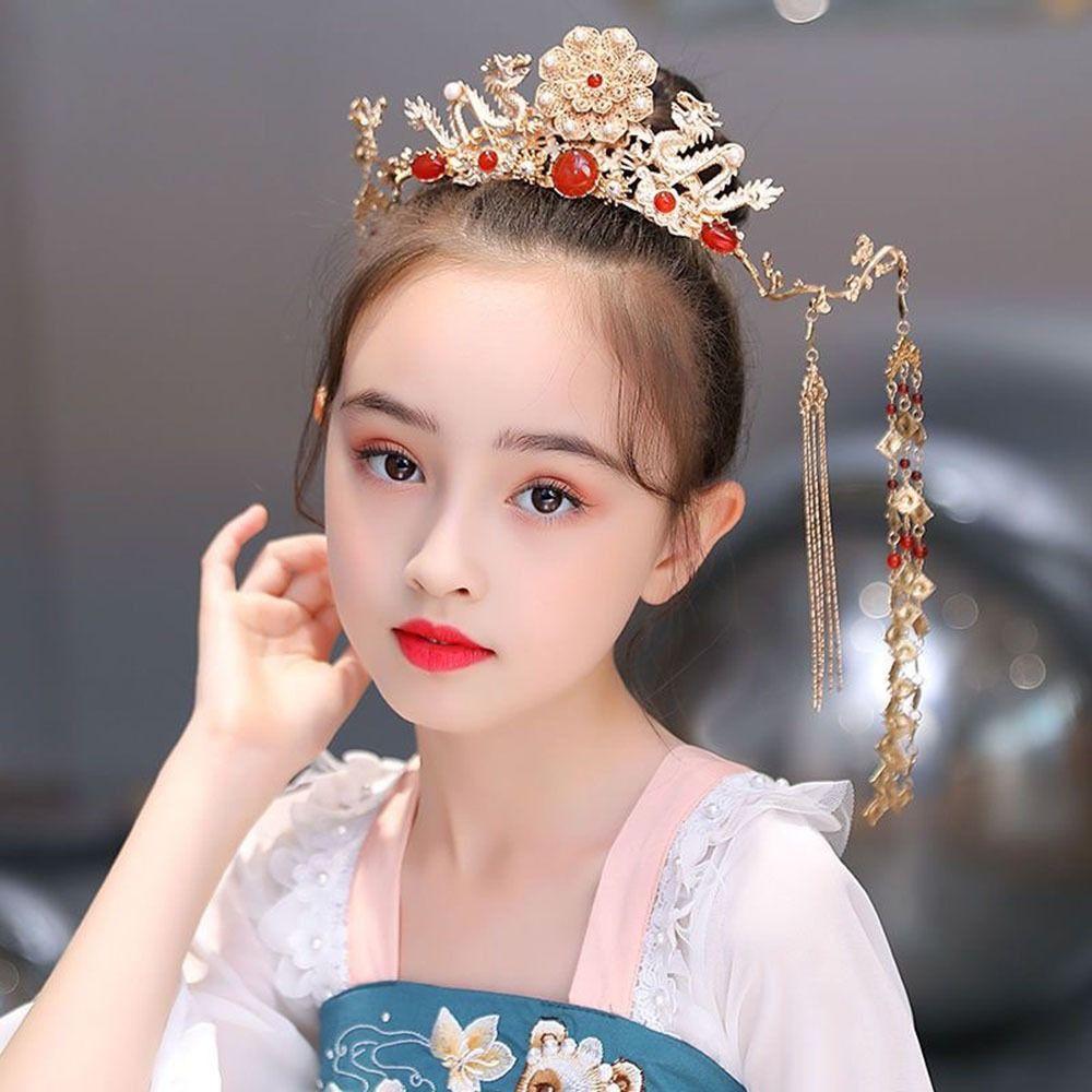 Children Flower Costume Props Hair Accessories Hanfu Hair Sticks Women Hair Fork Tassel Hairpins