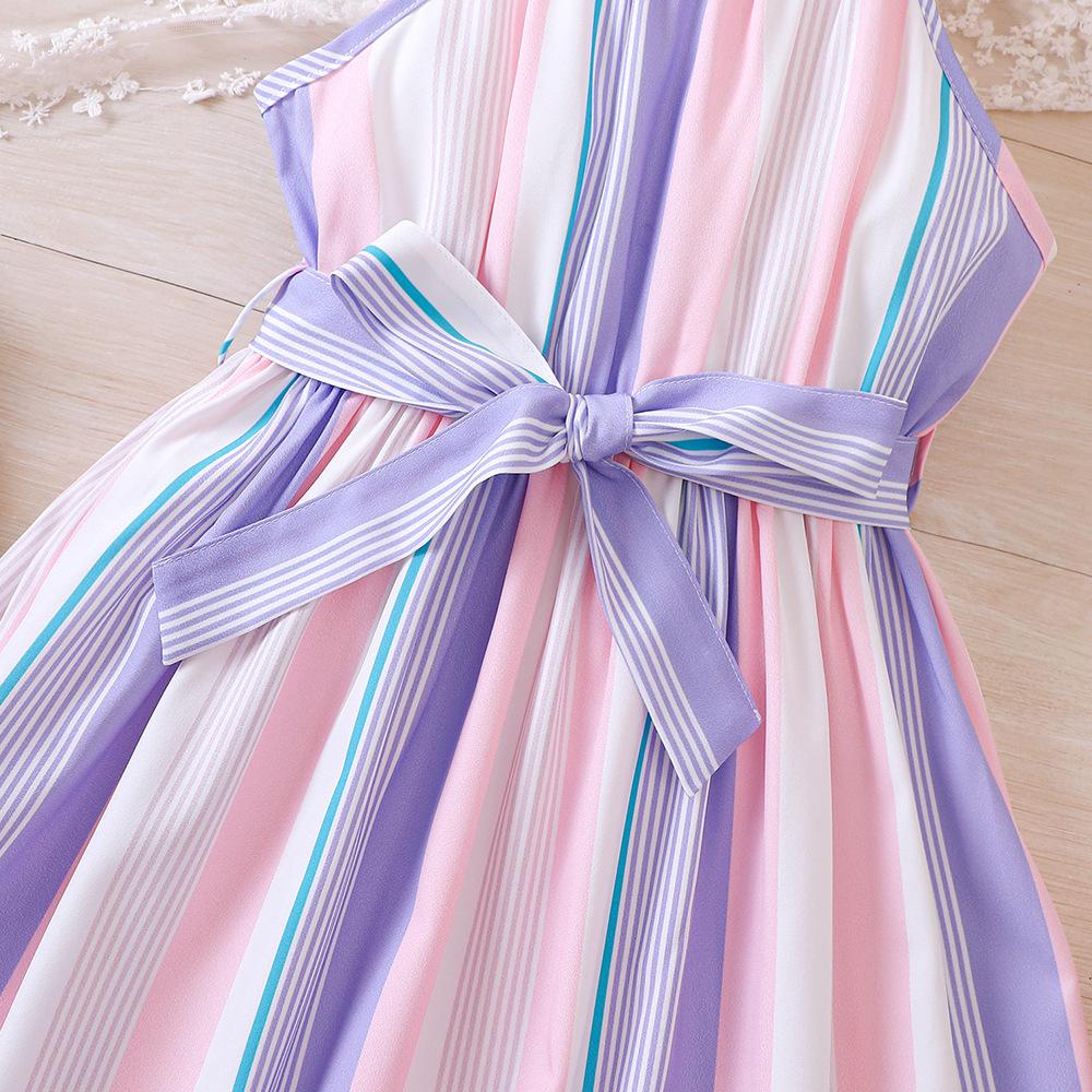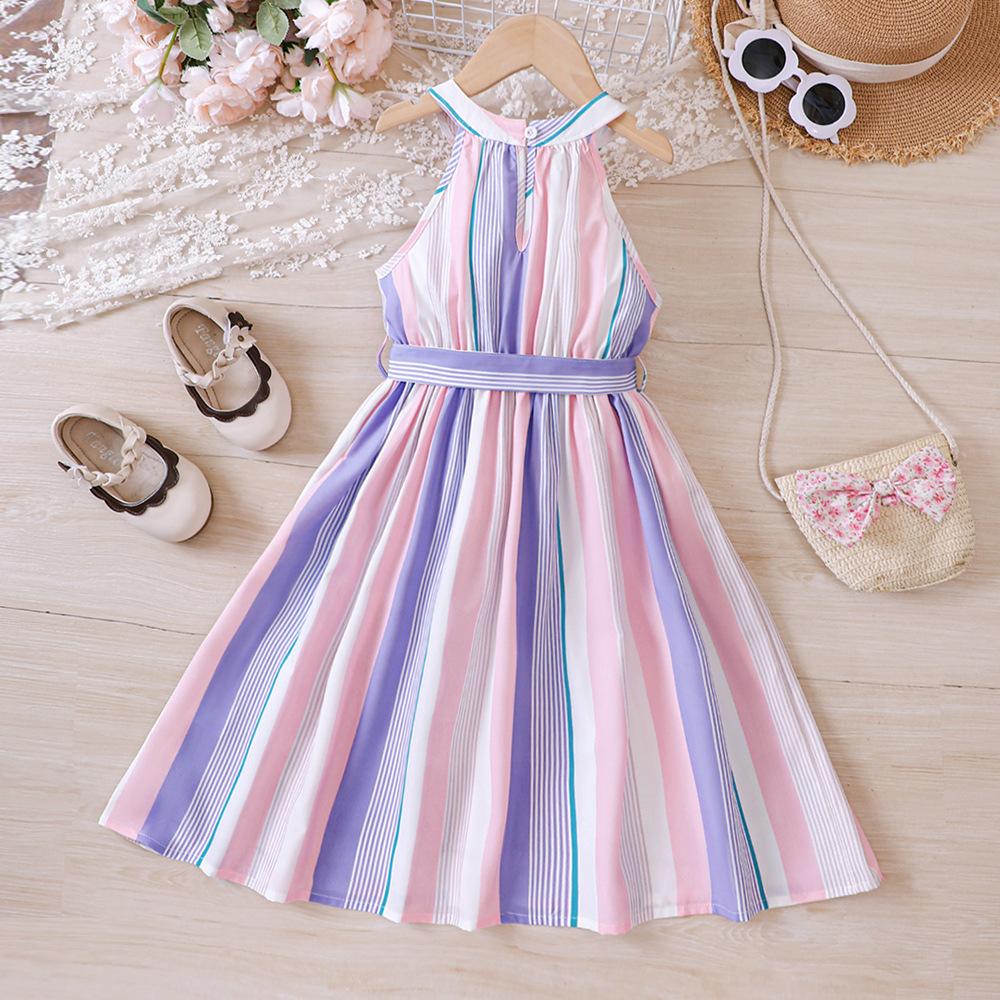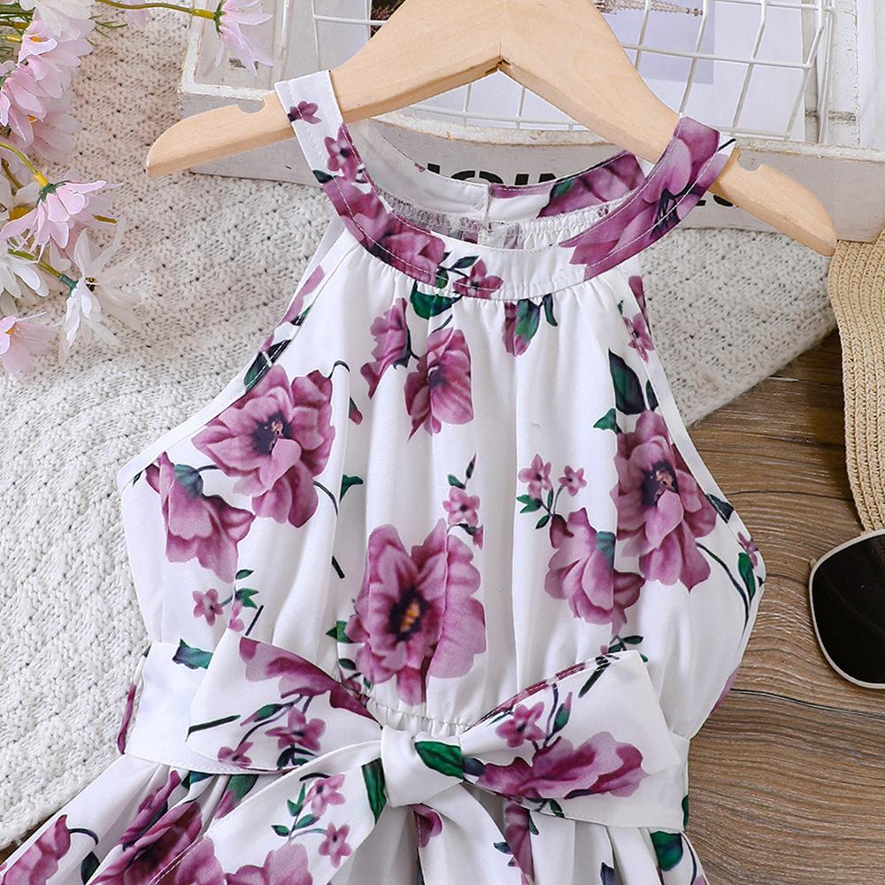 Детские летние платья с бретелью через шею, повседневные платья без рукавов с цветочным принтом для девочек