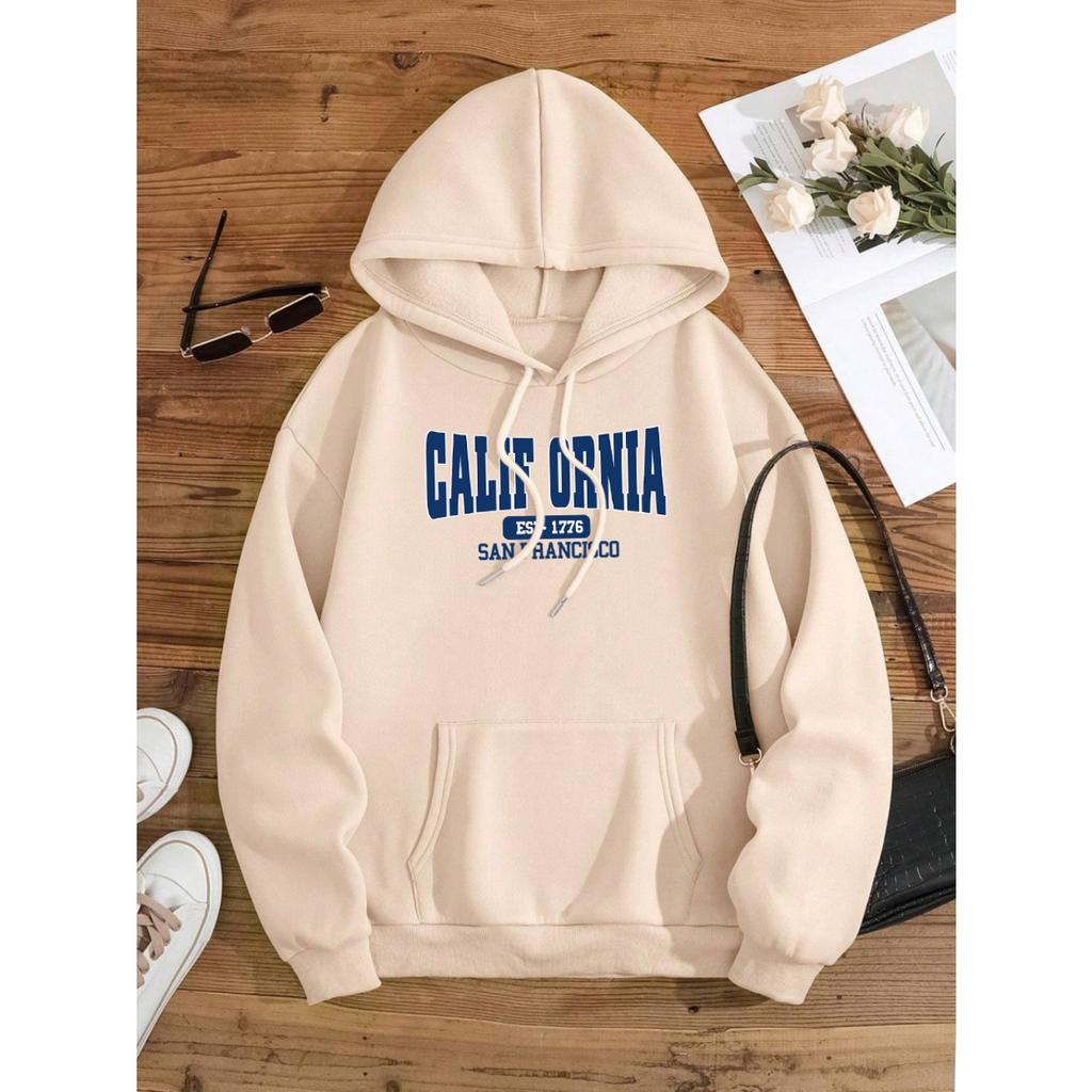 California Est 1776 San Francisco Мужские Женские Толстовки Милые Карманные Пуловеры Узор Оверсайз Уличная Флисовая Спортивная Одежда Для Пар