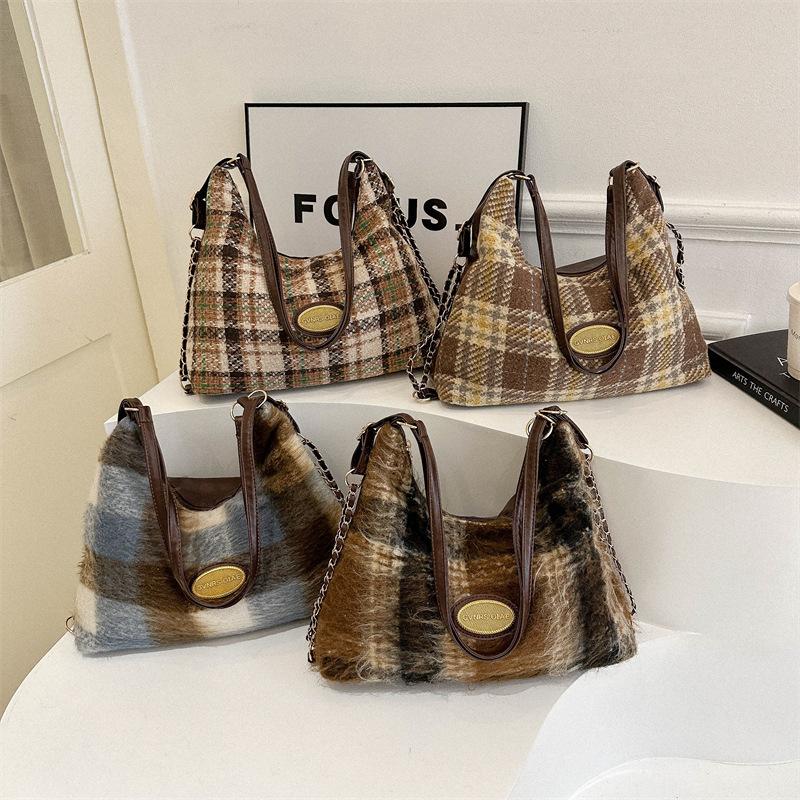 Большая вместительная сумка для женщин на осень и зиму, новая шерстяная клетчатая сумка через плечо в стиле ретро, повседневный универсальный нишевый рюкзак