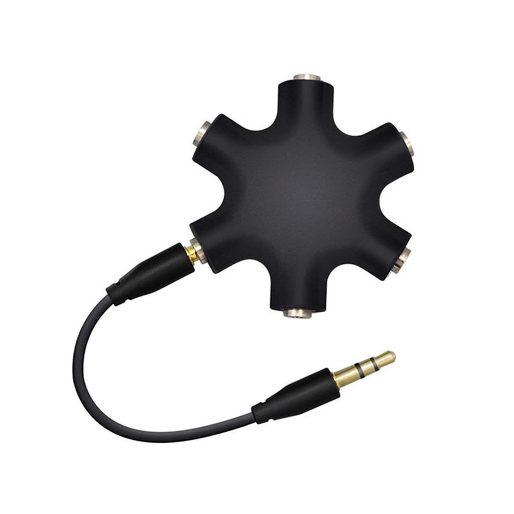 【Мультиаудиоразветвитель】Этот адаптер для наушников может обрабатывать 1 вход и 5 выходов, а также 5 входов и 1 выход в обоих направлениях.. Вы можете автоматически микшировать входной и выходной звук. До 5 человек могут слушать музыку одновременно.. Работает с любым устройством, имеющим порт AUX.