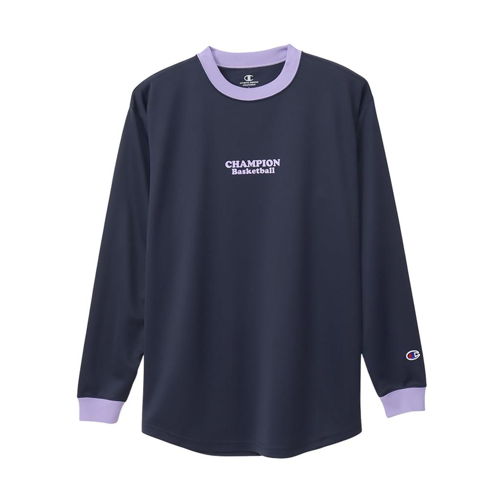 Длинный рукав, длинный круглый антибактериальный и запах быстро графический логотип с длинным рукавом темно-синий [Champion] футболка, рукав, шея, устойчивый, высыхание, принт, футболка,