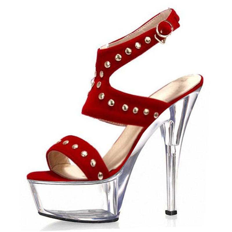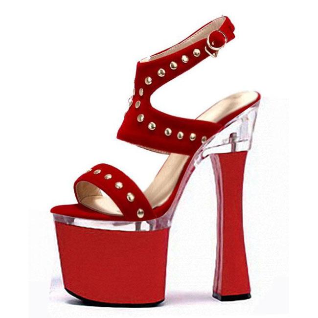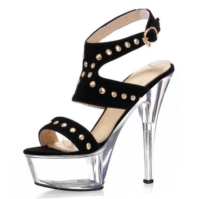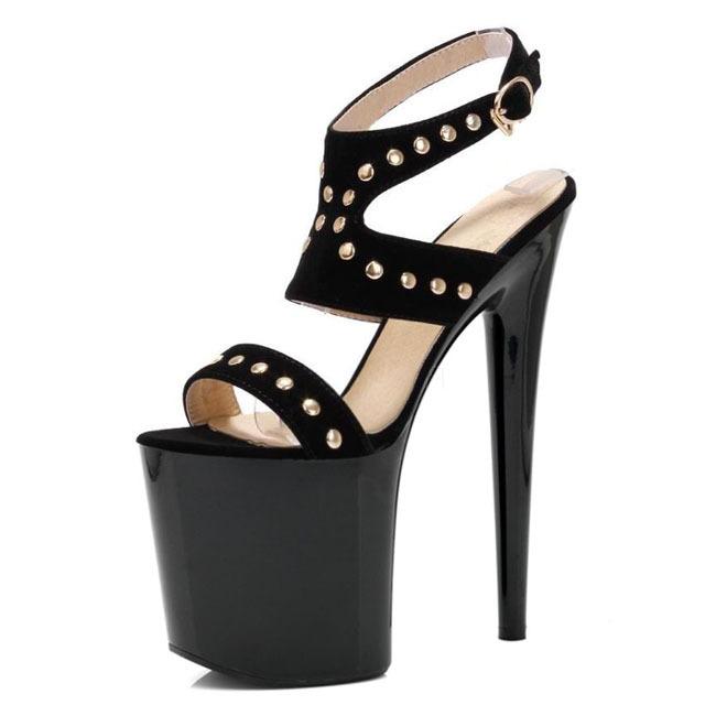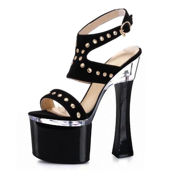 Босоножки на высоком каблуке, замшевые женские туфли с заклепками, летние новинки 2025 года, водонепроницаемая обувь на платформе с пряжкой