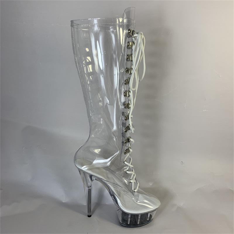 17 см пружина полностью прозрачный водонепроницаемый стол женский белый высокий голенище супер высокий каблук толстая подошва круглый носок клеевая подошва средний размер мода