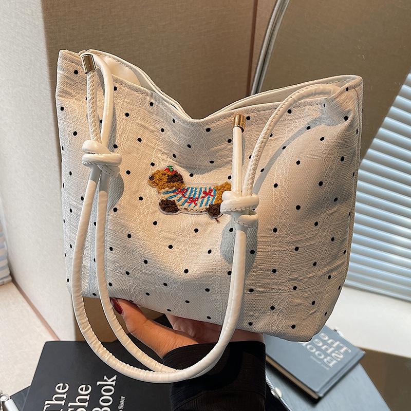 Милая сумка-ведро через плечо с изображением собаки таксы, новая, нишевая, в горошек, модная, простая, универсальная, модная, текстурная женская сумка — купить товар онлайн с бесплатной доставкой по всему миру!