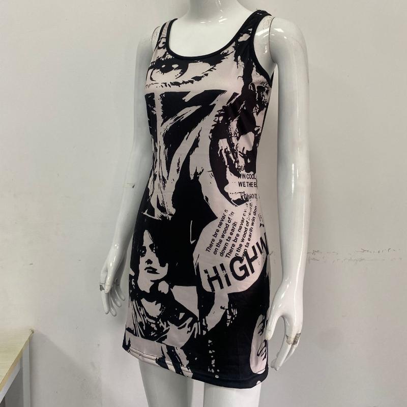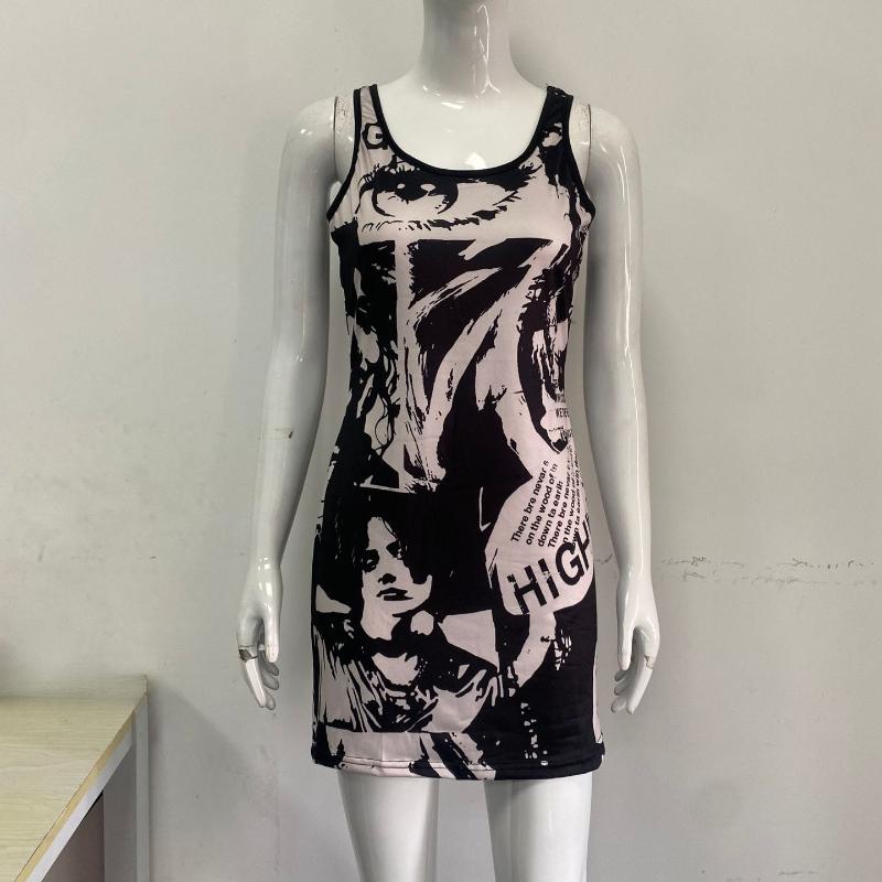 Европейское и американское летнее платье в стиле ретро с принтом Y2K, облегающее без рукавов, с подтяжками, с U-образным вырезом, облегающее бедра, сексуальное