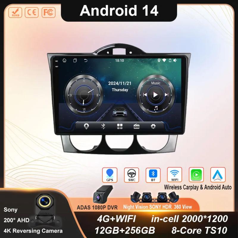 Android 14 For Mazda RX-8 RX 8 RX8 SE 2003 - 2021 Car Video Multiemdia Player Radio Carplay GPS QLED Monitors IPS Screen BT WIFI
