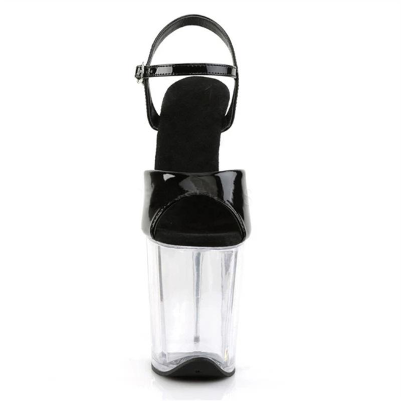 20Cm summer lady super high heel transparent sole elegant black thin heel round head one-word buckle super high heel fashion — купить товар онлайн с бесплатной доставкой до всему миру!
