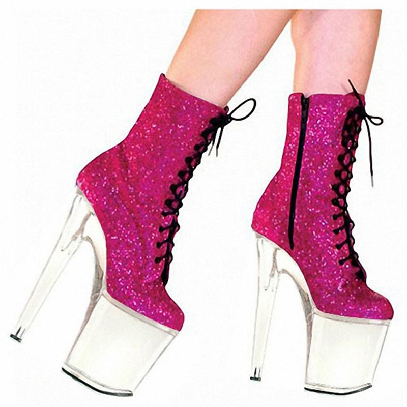 20 см. Ненавистные высокие красные короткие сапоги с блестящими частицами, с круглым носком, на высоком каблуке, с ремешком-шпилькой