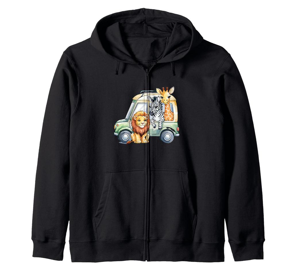 Лев зебра жираф приключение фургон сафари веселая толстовка с капюшоном на молнии