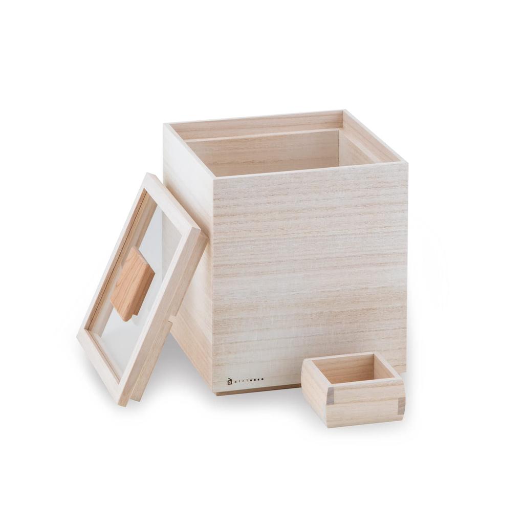 Крышка изготовлена из высокопрозрачного акрила, что позволяет контролировать содержимое.. Кроме того, крышка имеет форму четырехсторонней перекладины с перекладинами со всех сторон, что позволяет ей плотно закрываться, обеспечивая хорошую герметичность и затрудняя отсоединение крышки даже в случае ее опрокидывания.. Квадратная перекладина также используется для коробок для предметов искусства и ремесел и отличается своей роскошной отделкой.. На крестовине есть два паза, поэтому, сняв крышку, вы можете повесить ее на край основного корпуса.. Он также имеет наклон в 45 градусов для штабелирования, так что вы можете использовать и комбинировать его по своему усмотрению.. Эта миска для риса тщательно изготовлена и проста в использовании.. Павлония известна своими превосходными свойствами контроля влажности и отпугивания насекомых.. Его можно использовать во влажных условиях, он устойчив к гниению, поэтому его можно использовать в течение длительного времени.. Этот материал подходит для защиты риса и сохранения его вкусовых качеств.