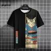 Мужская футболка в японском стиле с принтом животных и кошек Ukiyo-E Футболка с короткими рукавами, свободные топы, летняя мужская уличная повседневная одежда