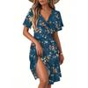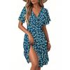 Женское повседневное модное платье с винтажным цветочным принтом и коротким рукавом и V-образным вырезом — купить товар онлайн с бесплатной доставкой до всему миру!